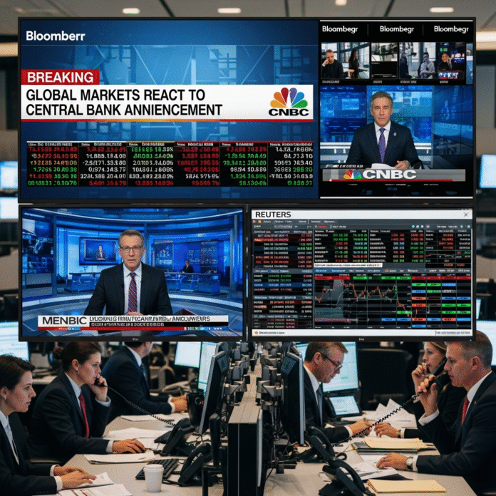 สรุปประเด็นสำคัญ: สำนักข่าวการเงินยักษ์ใหญ่ของโลก ทั้ง Bloomberg, CNBC, และ Reuters รายงานตรงกันถึงมติสำคัญของธนาคารกลางสหรัฐฯ (เฟด) ที่ตัดสินใจลดอัตราดอกเบี้ยนโยบายลง 25 จุดพื้นฐาน (bps) ในการประชุมครั้งล่าสุด เพื่อสนับสนุนการเติบโตทางเศรษฐกิจและตลาดแรงงานสหรัฐฯ ท่ามกลางสัญญาณเงินเฟ้อที่เริ่มชะลอตัวลง การเคลื่อนไหวดังกล่าวส่งผลให้ตลาดหุ้นทั่วโลกปรับตัวขึ้นอย่างคึกคัก โดยเฉพาะดัชนีหลักของสหรัฐฯ ที่ทำสถิติสูงสุดใหม่ ขณะที่ทองคำและน้ำมันมีเสถียรภาพมากขึ้น